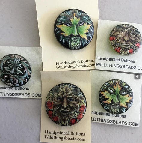 Glass buttons handpainted by an artist we found in Czech Republic. She is the only artist there who does this. She was trained by her father.