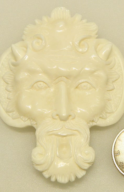 This Greenman cabochon was carved in Bali, Indonesia exclusively for us at Wildthingsbeads.